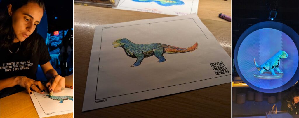 -A chave de ouro para fechar o passeio no Mercy Labs é uma simpática ativação onde você colore o desenho de um bicho, e depois de digitalizado ele ganha vida nos telões da sala. Eu achei um máximo, fico imaginando o que as crianças não devem achar, é muito mágico ver as cores e desenhos criados no bichinho reproduzido.